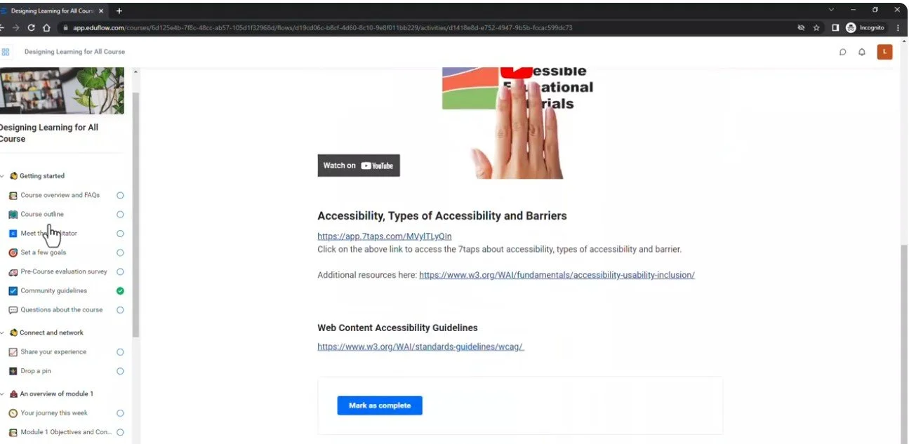 This Eduflow video offers a quick look at a self-paced course on creating inclusive, accessible learning experiences. It highlights key strategies for supporting diverse learners through clear, flexible, and student-centered design.
